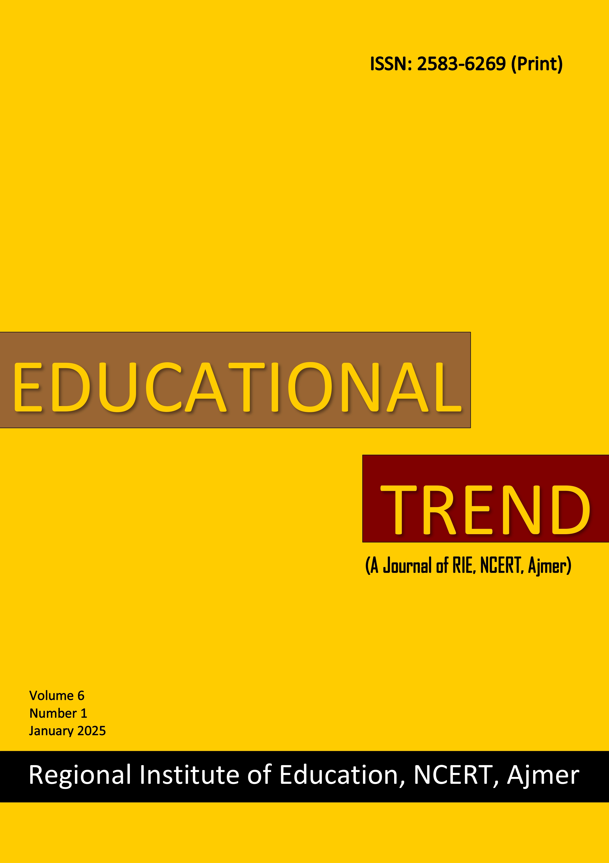 Educational Trend (A Journal of RIE, NCERT, Ajmer) is a peer-reviewed biannual Journal published by the Regional Institute of Education, NCERT, Ajmer with an aim to provide an academic forum to teachers, teacher educators, educational administrators and researchers through the presentation of their ideas, views, experiences and critical appraisal of educational problems on innovative educational practices, current issues, trends and quality researches in the field of education. The teachers, teacher educators, researchers and other academicians working in the field of different disciplines of education including Science, Mathematics, Humanities and Social Sciences are cordially invited to contribute their innovative experiments, experiences, articles, research papers, reviews of books a... More